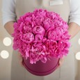15 розовых пионов в коробке
