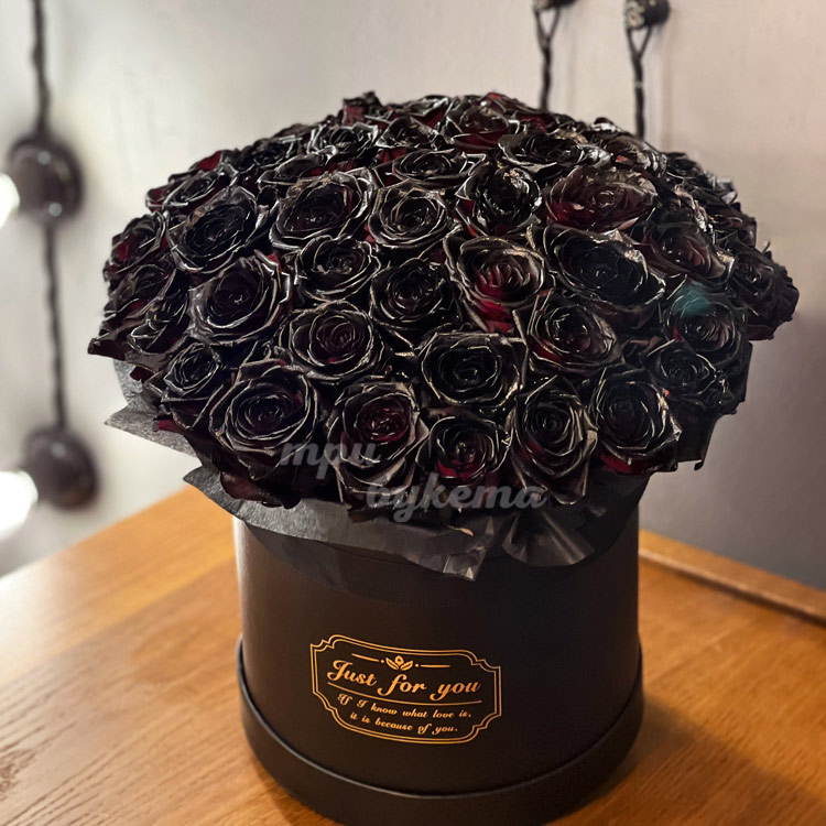 51 черная роза в шляпной коробке