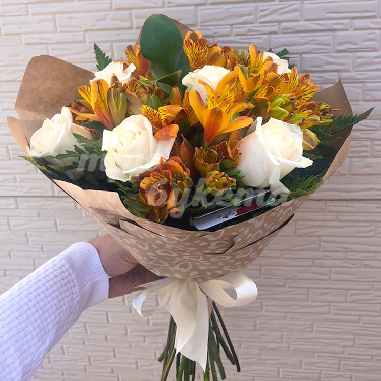 Белые розы и альстромерии
