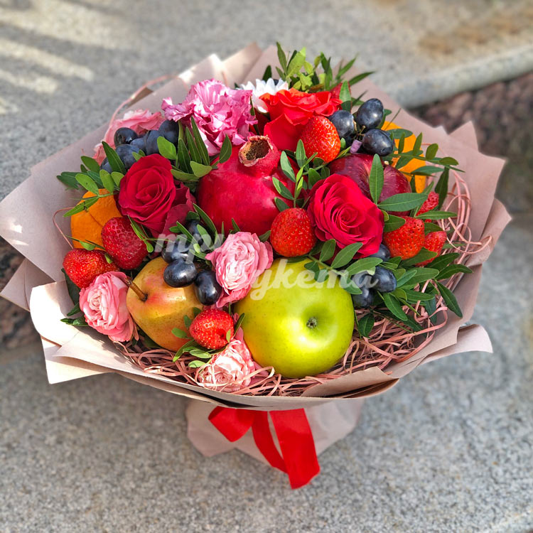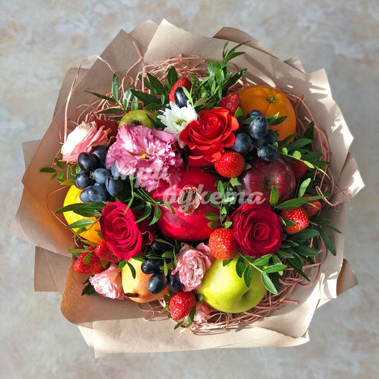 Букет из клубники, фруктов и цветов