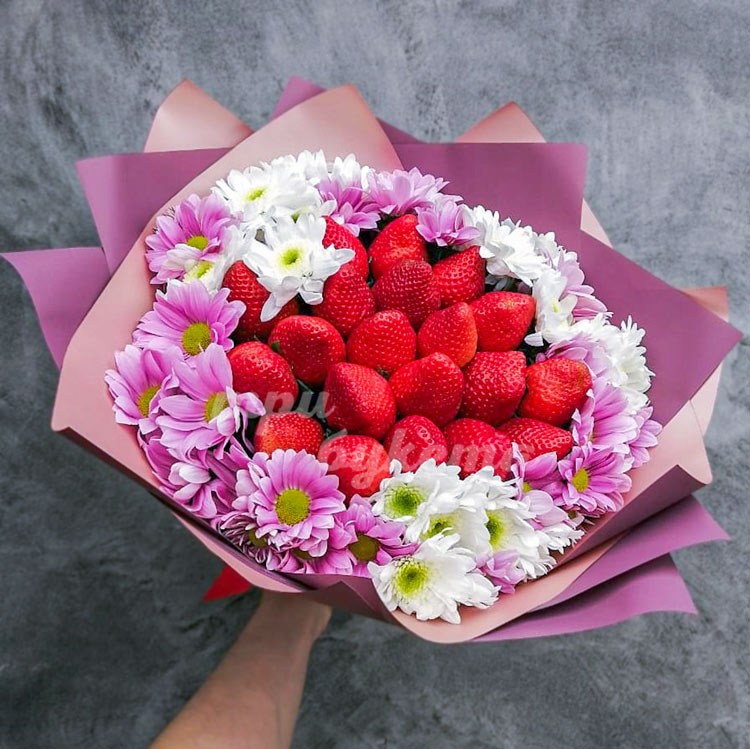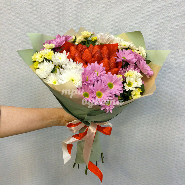 Букет из клубники и хризантем