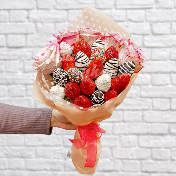 Букет из 20 ягод клубники и роз