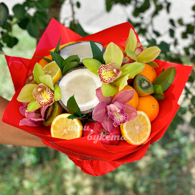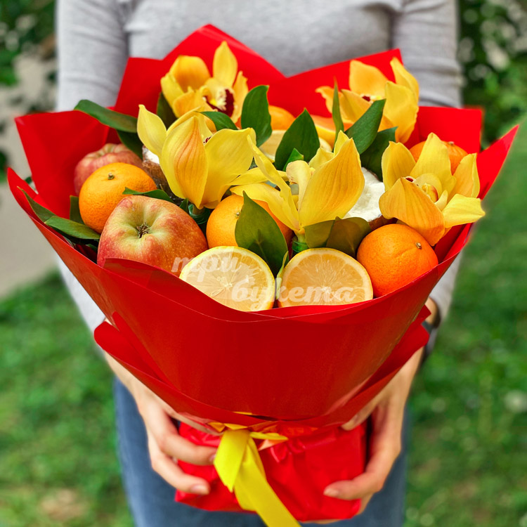 Фруктовый букет с орхидеями