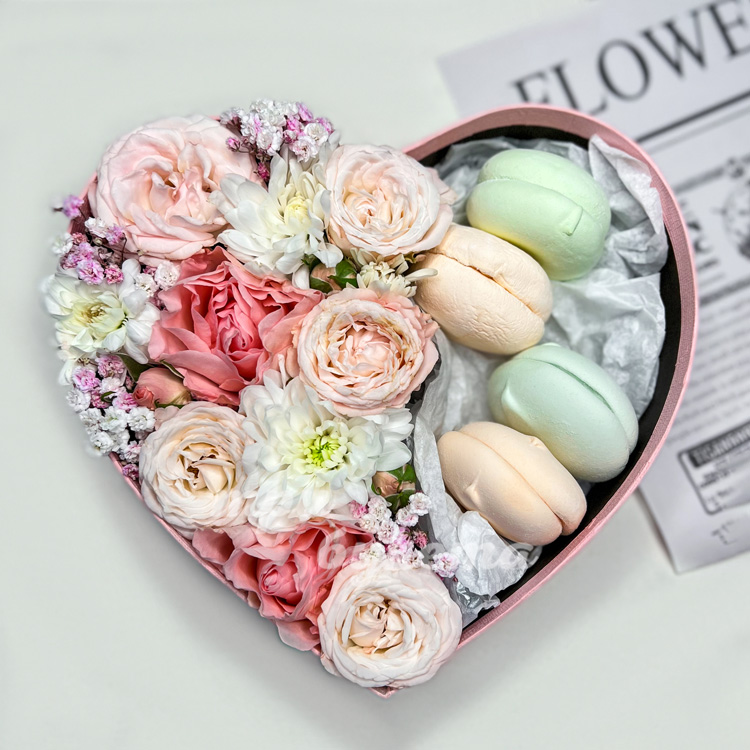Композиция-сердце из роз и зефира