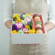 Коробка из эустом, сирени и макарунами