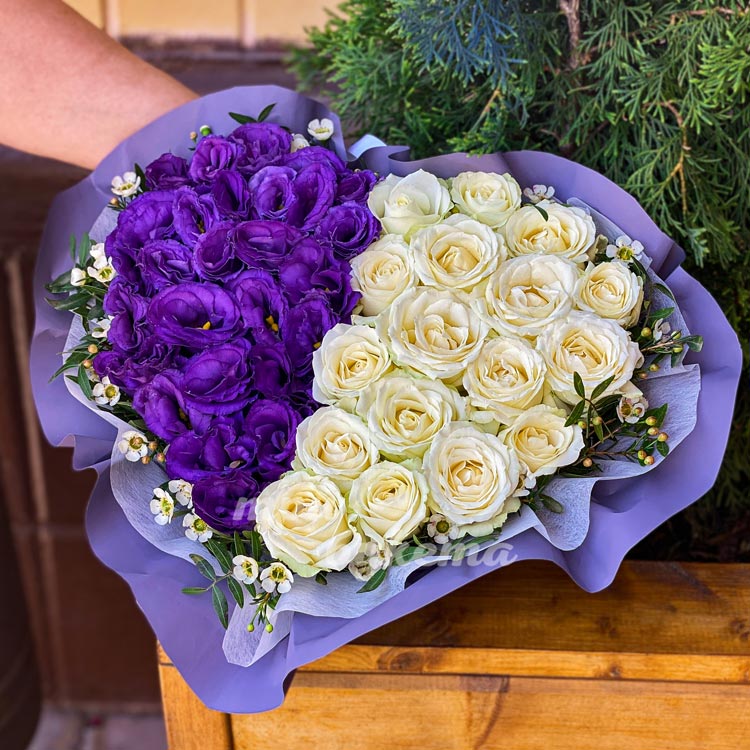 Коробка-сердце с розами и эустомами