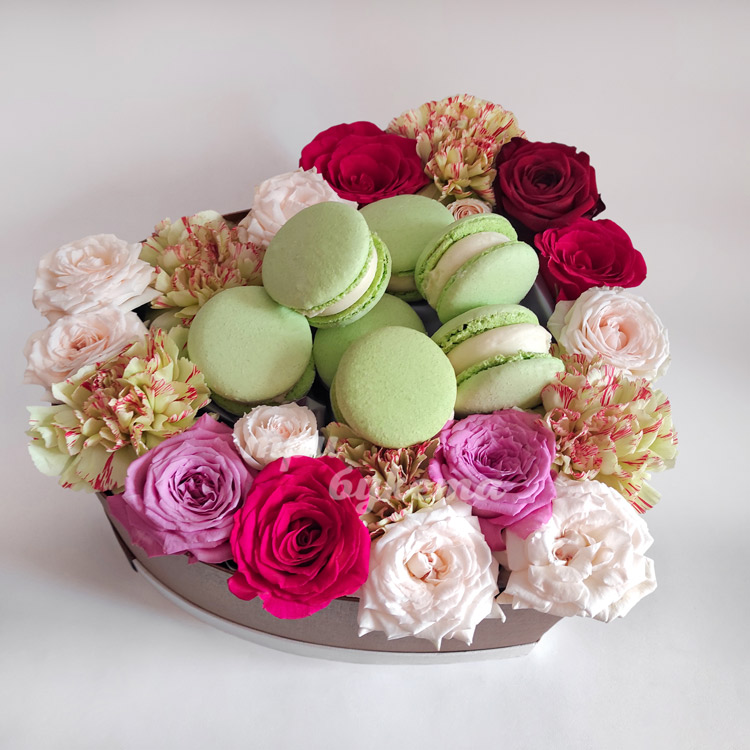 Коробочка сердце с 8 макарунами