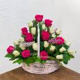 Корзина французских роз, хризантем и эустом