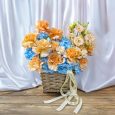 Корзина розовых французских роз и ранункулюсов