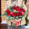 Красный букет с цветами и хлопком