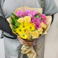 Разноцветные розы и хризантемы