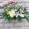 Ящик белых эустом и красных роз