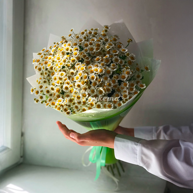 Зеленый букет из 11 танацетумов